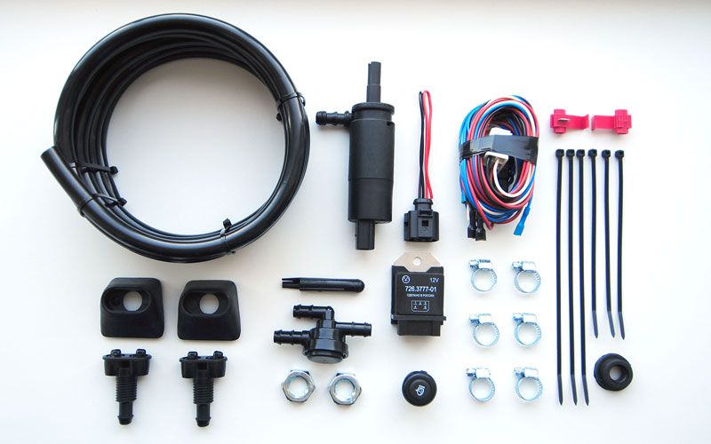 Комплект ОФС–12ПР с плоской форсункой и эластичным резиновым чехлом подходит для автомобилей с плоским бампером. Модификация форсунки «П» из комплекта ОФС-12П. Резиновый чехол выше пластикового примерно на 1 см., что позволяет немного приподнять саму форсунку над поверхностью бампера.