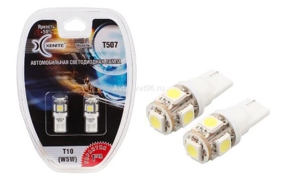 Автомобильная габаритная светодиодная лампа под цоколь W5W (5 диод) Xenite T 507 (комплект 2шт.) 4300K 100LM