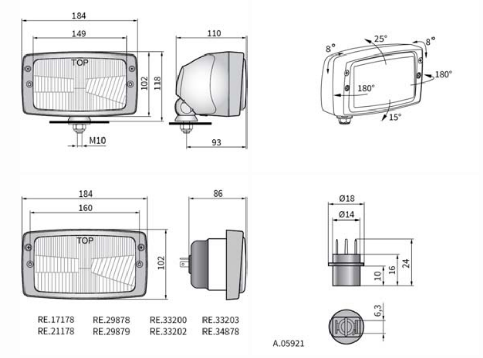 Особенно рекомендуются для тракторов и тихоходных автотранспортных средств. Предназначены для монтажа в фабрично приспособленных местах или для установки в передних нишах автомобиля. Фары в версии с корпусом устанавливаются на кузове в стоячем положении при помощи болта М10. Знак официального утверждения Е20 касается фар оснащенных лампами H4 а знак Е8 лампами R2. Части полезные при монтаже: пыльник главной лампы - кат. № A.05820 патрон лампы габаритного огня - кат. № A.05921 модульное соединение главной лампы - кат. № A.07128 Рекомендуемое использование: A - тракторы: Zetor, Zetor Forterra, Zetor Proxima, Fendt, Fendt Farmer, Fendt Favorit, Ursus, Pronar, John Deere, Farmer, Farmtrac B - тихоходные транспортные средства: Ammann, Div, Doosan, Hamm, Hyundai C - тракторы: Zetor: Proxima i Forterra