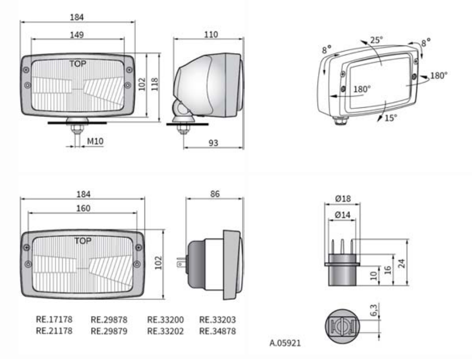 Особенно рекомендуются для тракторов и тихоходных автотранспортных средств. Предназначены для монтажа в фабрично приспособленных местах или для установки в передних нишах автомобиля. Фары в версии с корпусом устанавливаются на кузове в стоячем положении при помощи болта М10. Знак официального утверждения Е20 касается фар оснащенных лампами H4 а знак Е8 лампами R2. Части полезные при монтаже: пыльник главной лампы - кат. № A.05820 патрон лампы габаритного огня - кат. № A.05921 модульное соединение главной лампы - кат. № A.07128 Рекомендуемое использование: A - тракторы: Zetor, Zetor Forterra, Zetor Proxima, Fendt, Fendt Farmer, Fendt Favorit, Ursus, Pronar, John Deere, Farmer, Farmtrac B - тихоходные транспортные средства: Ammann, Div, Doosan, Hamm, Hyundai C - тракторы: Zetor: Proxima i Forterra
