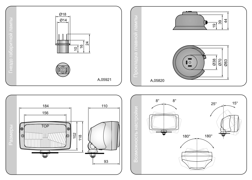 Предназначены для монтажа в фабрично приспособленных местах или для вертикального монтажа в передней части кузова автомобиля. Особенно рекомендуются для тракторов и тихоходных автотранспортных средств.