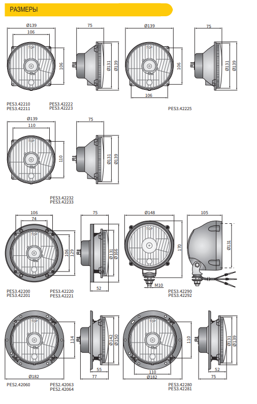 Фара головного света Wesem PES3.42221 диаметр 139 (ближний, дальний, габаритный)
