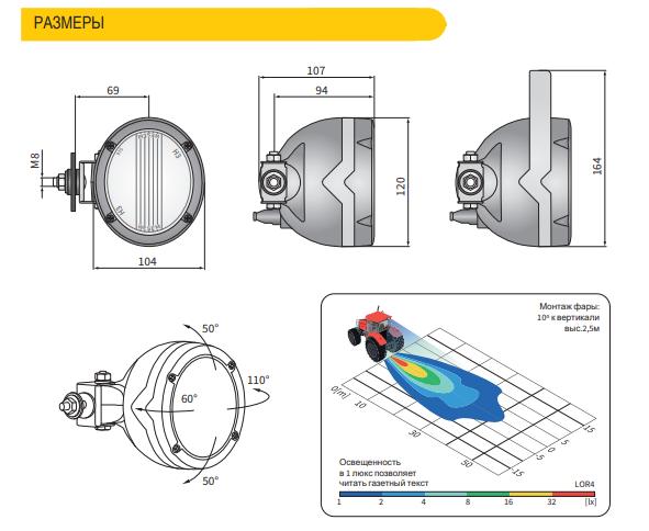 Предназначены для освещения поверхности вокруг автомобилей, тракторов, тихоходных автотранспортных средств и любых мест позволяющих поставить указанное напряжение.