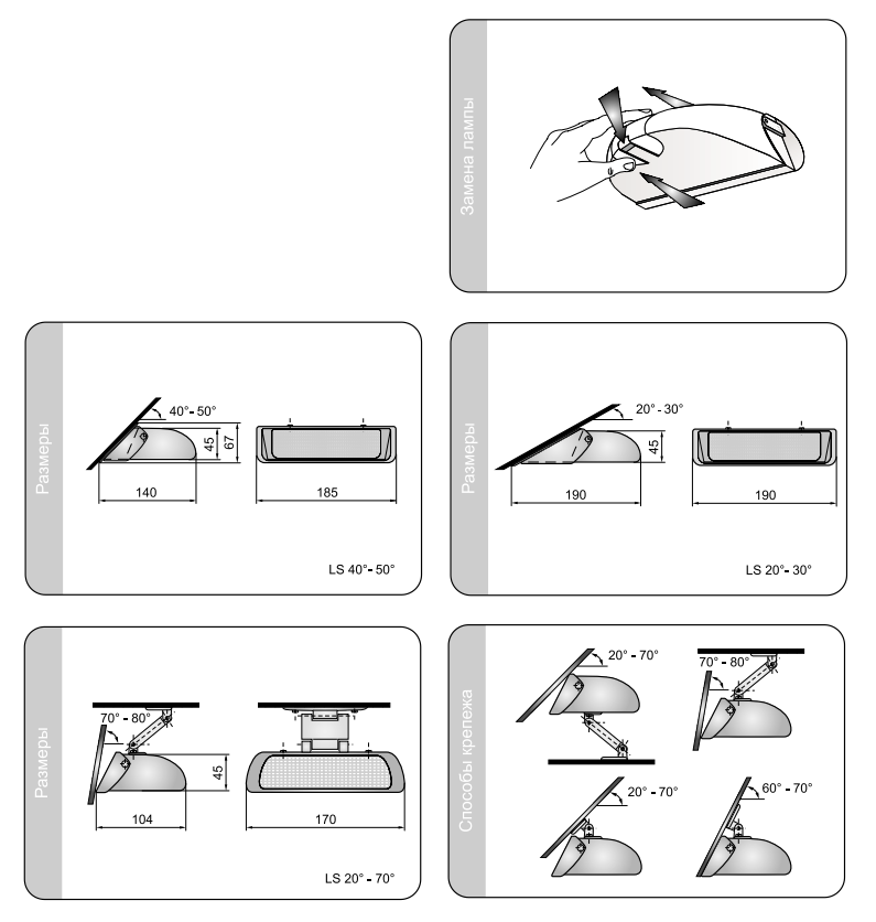 LS.11649 - для автомобилей, заднее стекло которых отклонено на угол 20°÷70°. LS.12651 - для автомобилей, заднее стекло которых отклонено на угол 20°÷30° от горизонтали, например Polonez Caro. LS.21051 - для автомобилей, заднее стекло которых отклонено на угол 40°÷50° от горизонтали, например Fiat 126p, Fiat 125p, Skoda.