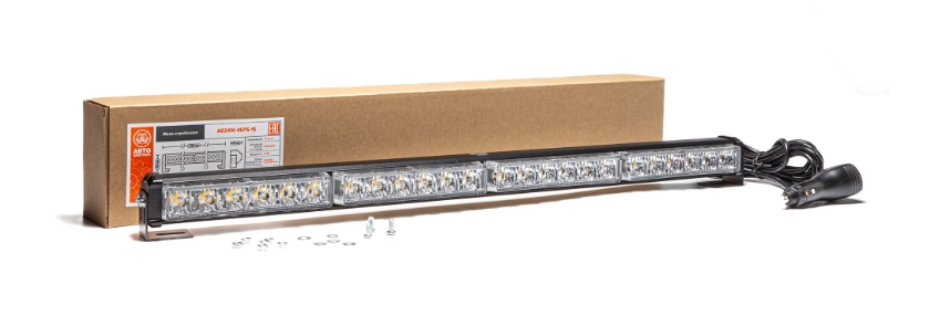 Маяк-стробоскоп 12/24 В, 24 Вт, желтый, 1-стор. (4 блока Epistar), 18 реж., крепление на кронштейне, прикуриватель (провод 3м), 590*40*50 мм