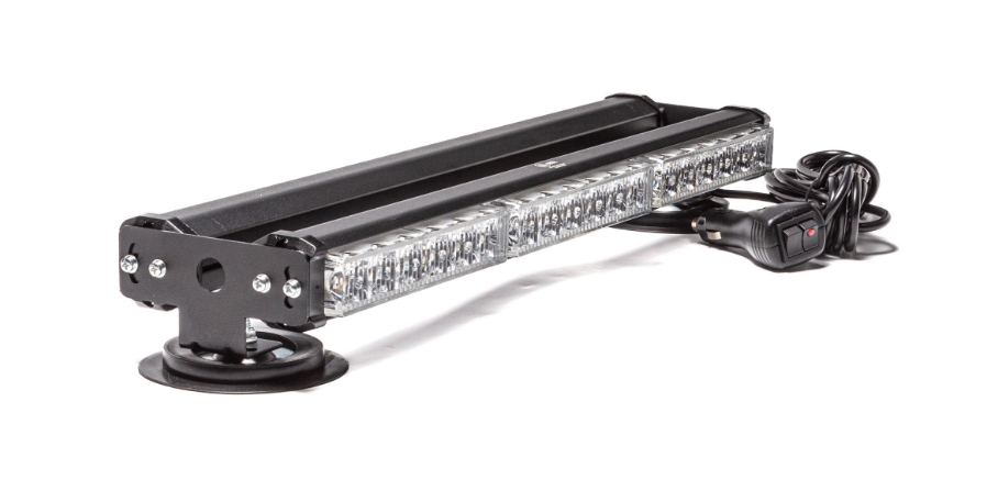 Маяк-стробоскоп 12/24 В, 36 Вт, желтый, 2-стор. (3+3 блока Epistar), 18 реж., крепление на магните, прикуриватель (провод 3м), 450*120*78 мм