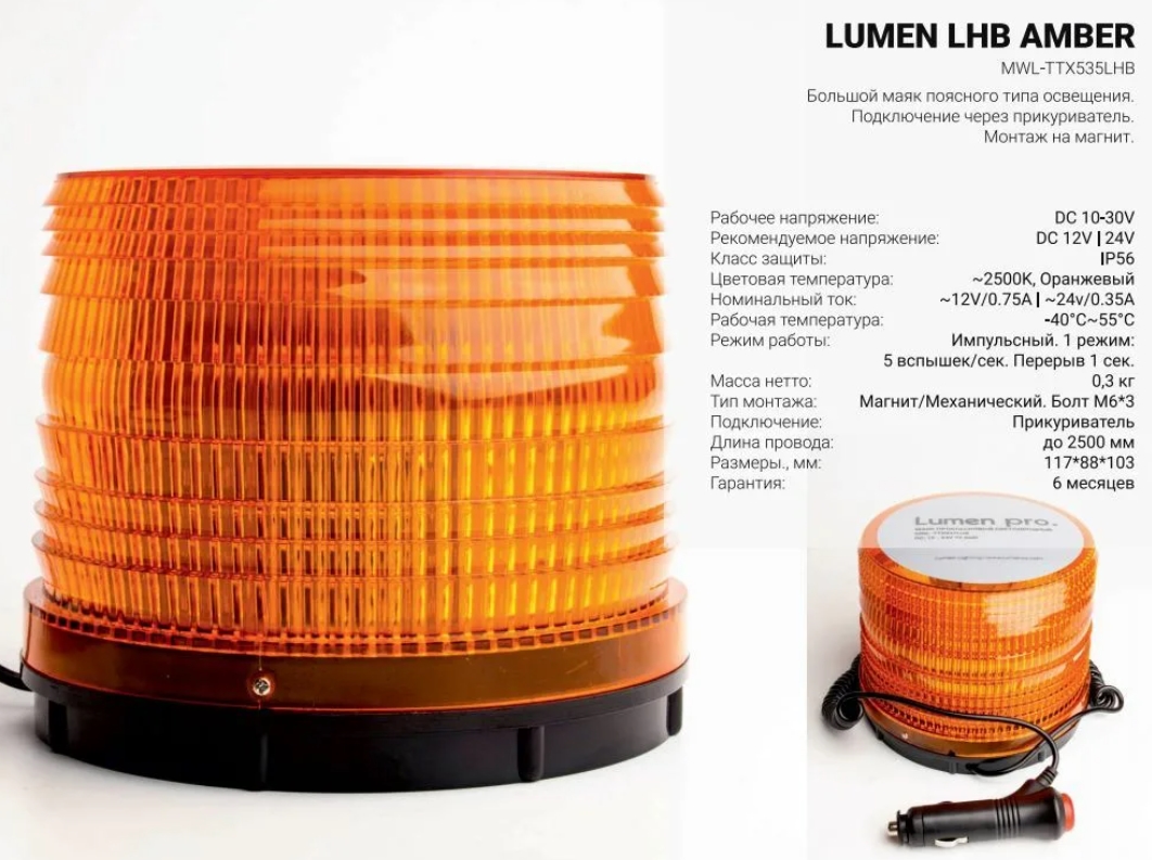 Проблесковый светодиодный маяк желтый Lumen LHB Amber MWL-TTX535LHB