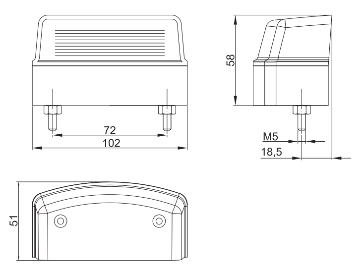 | Фонарь освещения номерного знака красного цвета с габаритным светом и проводом 2х0,75 мм². |