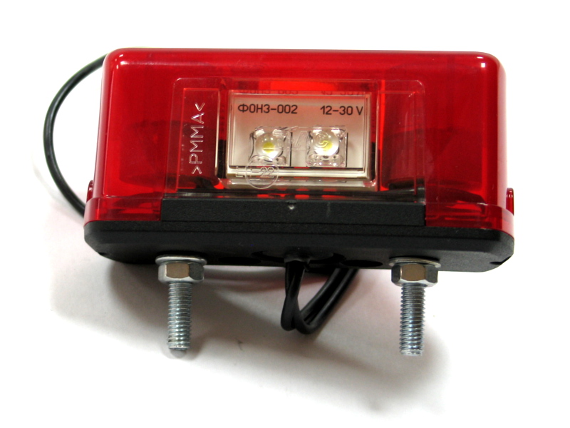 Фонарь Освещения Номерного Знака LED, корпус "прямоугольный", красный с функцией заднего габарита (4 диода) 12B/24B