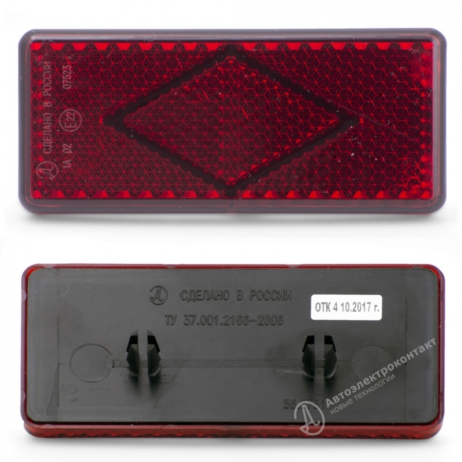 Световозвращатель АЭК 56.3731, прямоугольный, красный с 2-мя клипсами.