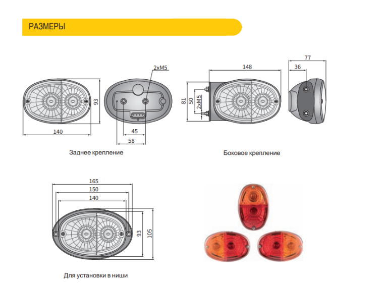 Задний фонарь производится в версии 3Ф с габаритным светом, указателем поворота и стоп сигналом.