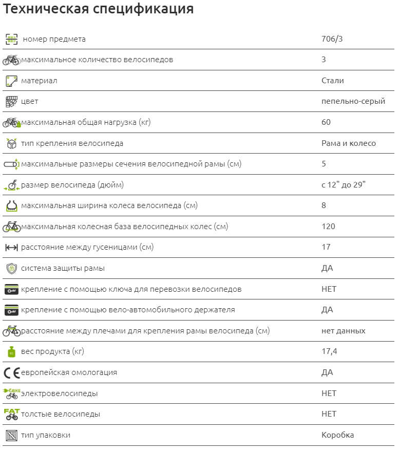 Крепление велосипеда на фаркоп PERUZZO 706-3 Parma для 3 велосипедов, серый (коробка)